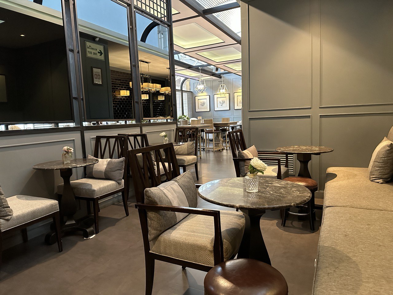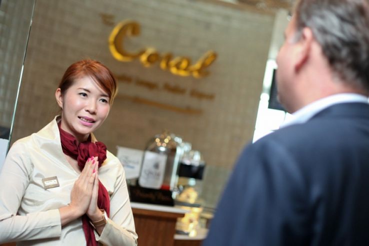 140 वर्ग मीटर क्षेत्र में मूंगा शैली में 60 सीटों वाला एक आरामदायक हॉल। एक्जीक्यूटिव लाउंज क्षेत्र को भीड़-भाड़ वाले हवाई अड्डे की हलचल से बचते हुए, एक्जीक्यूटिव-श्रेणी का आराम प्रदान करने के लिए डिज़ाइन किया गया है। आप दिन के दौरान माई खाओ बीच के 180 डिग्री के मनोरम दृश्य और शाम को सुंदर सूर्यास्त का आनंद लेते हुए अपनी उड़ान की प्रतीक्षा करते हुए तरोताजा हो सकते हैं और काम पर लग सकते हैं। हमारे लिविंग रूम में सोफे के लिए उपयोग की जाने वाली सामग्री जिम थॉम्पसन से 100% थाई रेशम है और दीवारों को मोतियों और सीपियों से सजाया गया है, जो एक मूंगा शैली और माहौल बनाते हैं।