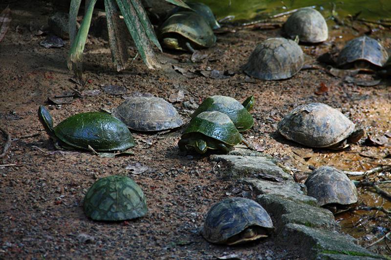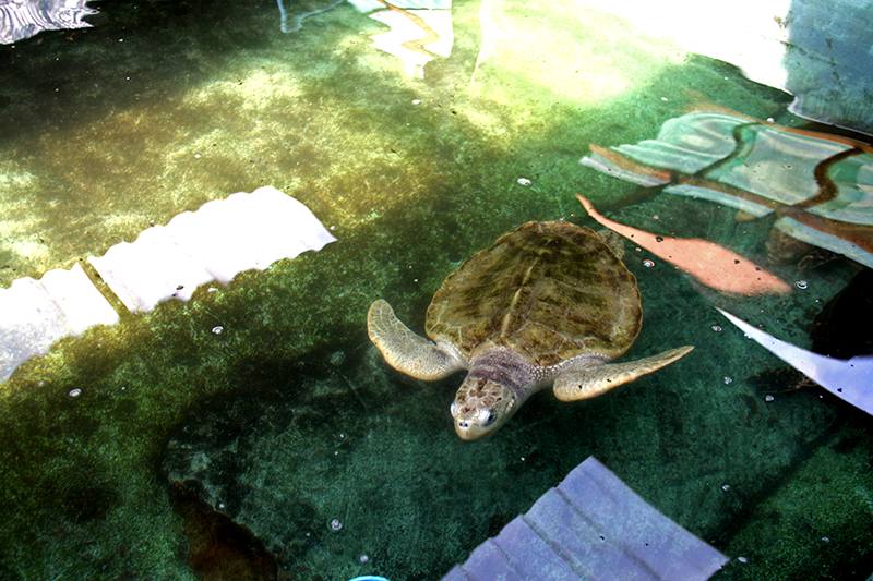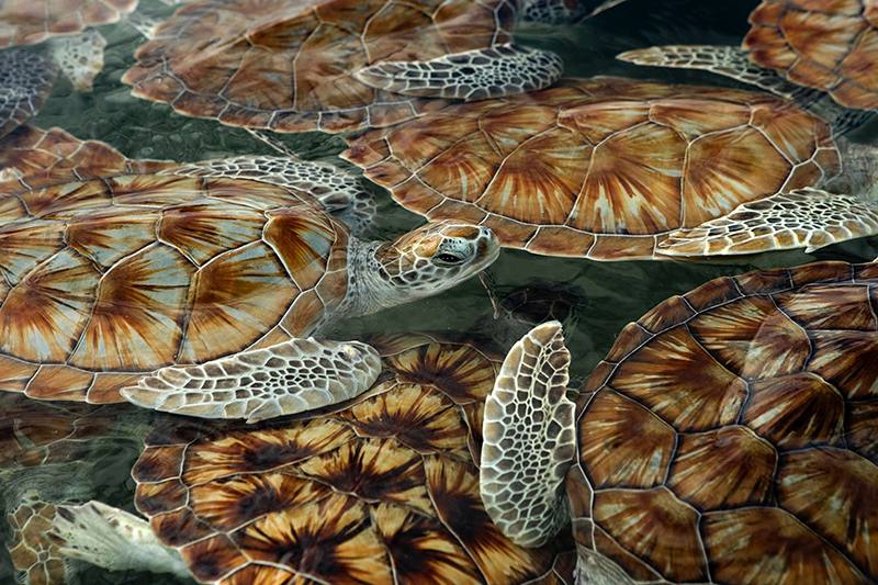 एक संरक्षित खेत में समुद्री कछुओं का दौरा।
