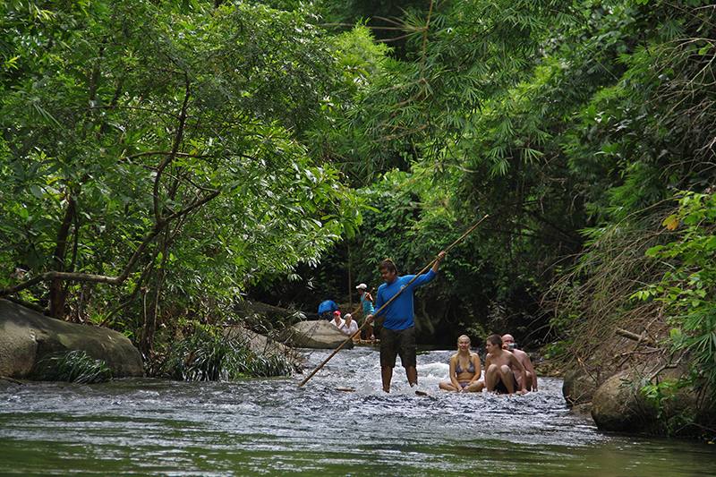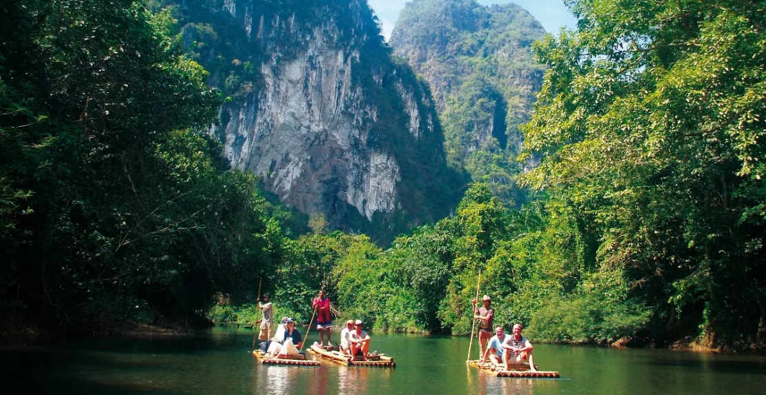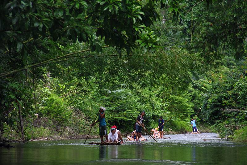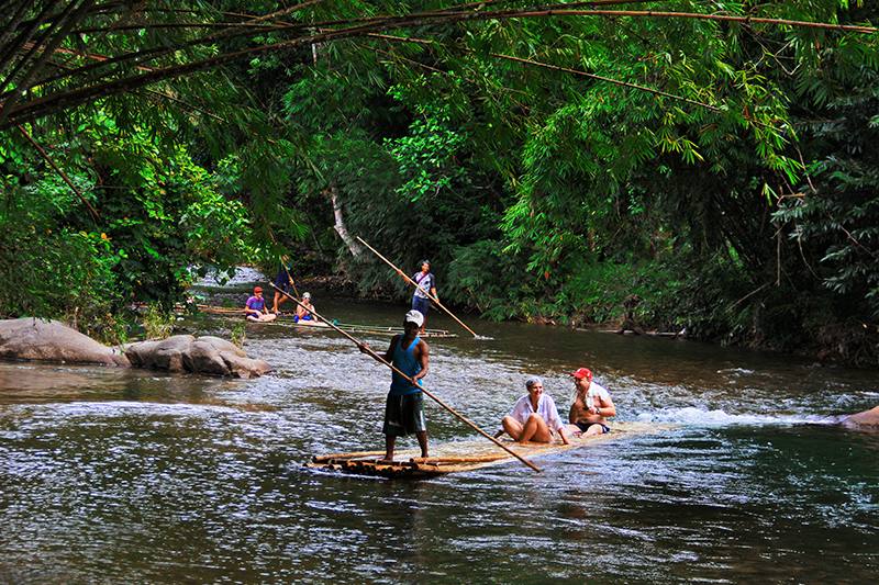 बांस की नावों पर राफ्टिंग और अविश्वसनीय सुंदरता की प्रकृति को देखने का अवसर।
