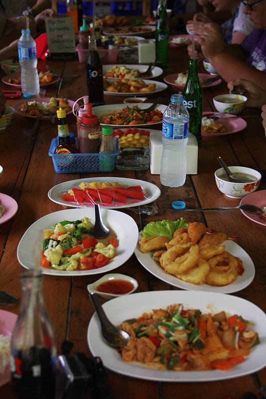 पारंपरिक थाई रेस्तरां में दोपहर का भोजन।