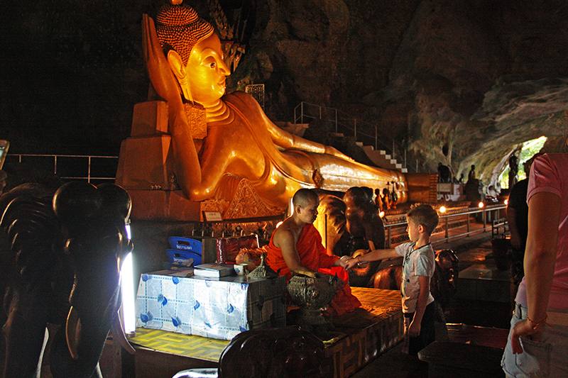 यह मार्ग कार्स्ट गुफाओं और राष्ट्रीय उद्यान के झरनों से होकर गुजरता है। मेहमान प्राकृतिक उत्पत्ति की स्थानीय गुफाओं की विविधता की सराहना करेंगे, चट्टानी राहतों का अध्ययन करेंगे, और बुद्ध की मूर्ति और कछुए के खेत के साथ एक मंदिर का भी दौरा करेंगे। यात्रा के दौरान थाईलैंड के जीवन और संस्कृति के बारे में रोचक जानकारी दी जाती है।