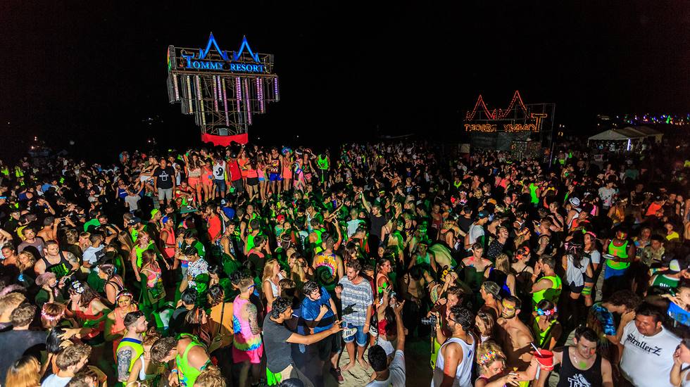 मादक स्वतंत्रता और विशेष ऊर्जा से भरपूर एक जगह, जहां दुनिया भर से क्लबर्स आते हैं। इससे पहले कि हम अपने आप को प्राकृतिक तत्वों और संगीतमय स्पंदनों की शक्ति के प्रति शत-प्रतिशत समर्पित कर दें, हम युद्ध का रंग लगा देते हैं! हम इच्छा रखने वालों को चमकीले चमकदार रंगों से रंगते हैं, चमकते कंगन, सींग, आकर्षक बहु-रंगीन विग, विशाल प्लास्टिक के गिलास, हास्यास्पद टोपियाँ जोड़ते हैं और समुद्र तट डांस फ्लोर पर हमला करते हैं!