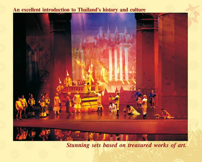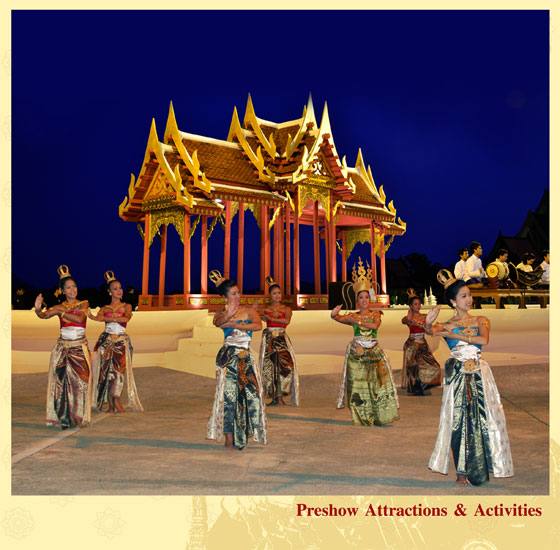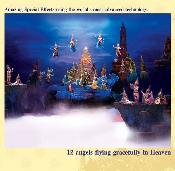 100 से अधिक विभिन्न दृश्य, शानदार डिज़ाइन और दृश्यावली, बारीकियों पर विशेष ध्यान, 500 से अधिक पोशाकें, सुंदर ढंग से उड़ते देवदूत, मंच पर एक नदी का अचानक प्रकट होना, मूसलाधार बारिश, गड़गड़ाहट और बिजली के साथ एक वास्तविक तूफान, और कई अन्य अद्भुत विशेष प्रभाव — यह सब एक गतिशील प्रदर्शन में आपका इंतजार कर रहा है जो आपको थाई परंपराओं और राज्य की सांस्कृतिक विरासत से परिचित कराएगा।