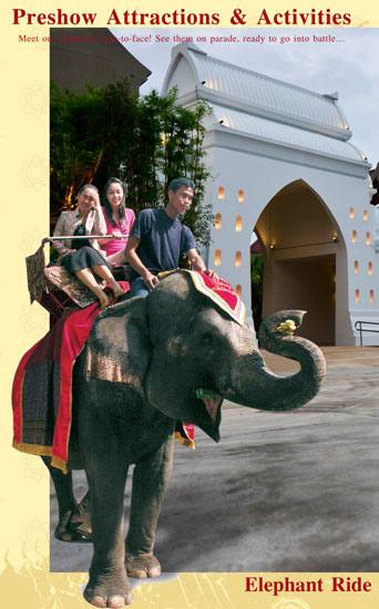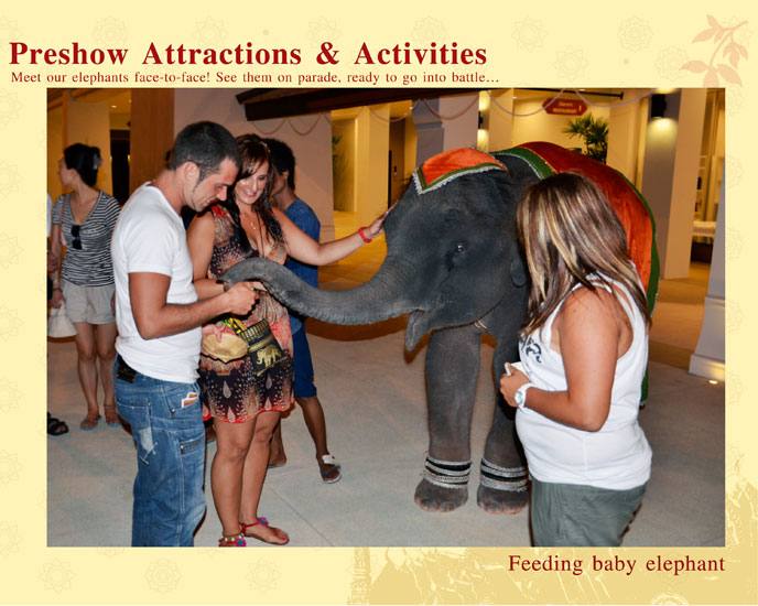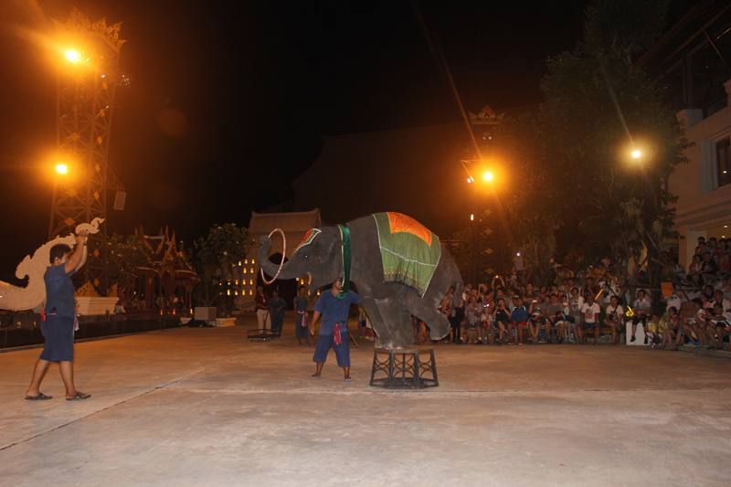 शो में भाग लेने से पहले, आपको बुनियादी थाई शिल्प प्रदर्शित करने वाले एक अस्थायी थाई गांव का दौरा करने का अवसर मिलेगा। आप हाथियों की सवारी करेंगे और उन्हें खाना खिलाने का अवसर मिलेगा। आप हाथियों की एक सैन्य परेड, थाई मुक्केबाजी देखेंगे, विभिन्न प्रतियोगिताओं में भाग लेंगे, एक रेस्तरां में रात्रिभोज करेंगे, और आप स्थानीय दुकानों में स्मृति चिन्ह खरीद सकते हैं।